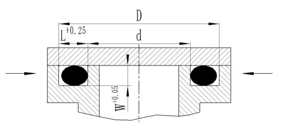 Internum pressura: et exterior diameter de o-anulum et exterior diameter de sulcus d sit basically proxima ad vel maiorem quam I ~ III%.
