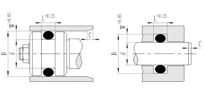 Sigillum radiale foraminis: Installation sulcus est in hastile et interiore diameter o-anulum est aequalis vel leviter minor quam sulcus fundum diametrum d.