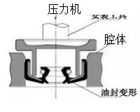 Hoc consilium aptum est ad condiciones in quibus sigillum oleum extremum facies minor est quam cavitatis finis faciei. Etiam celeri pressione, sigillum oleum adhuc bene collocari potest. Sed hoc genus fixturae positione radiali caret, ergo perpendicularitas axialis laminae planae et pressionis impressae artificii scapus certa praecisione consequi debet. |